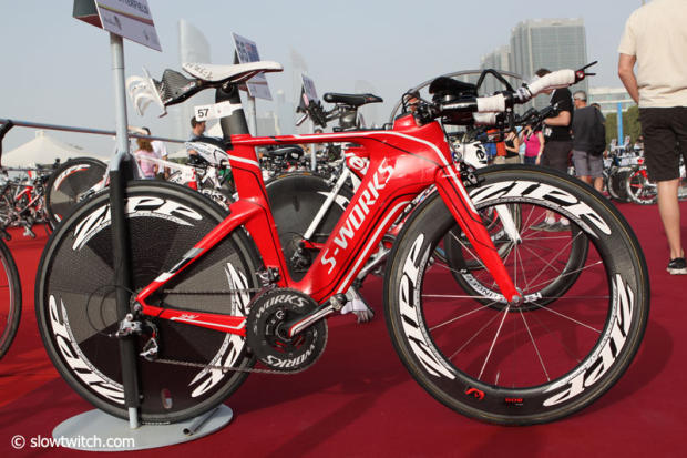 Athletes had time from 9:30 am until 5 pm to check in their bikes and with three separate events running parallel, the transition filled up with a fairly eclectic mix of bicycles. We though focused mostly on a few Pro bikes.