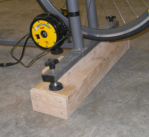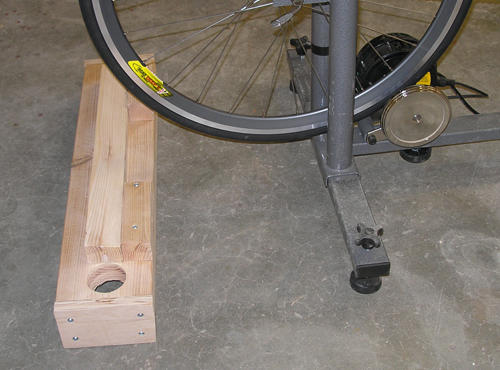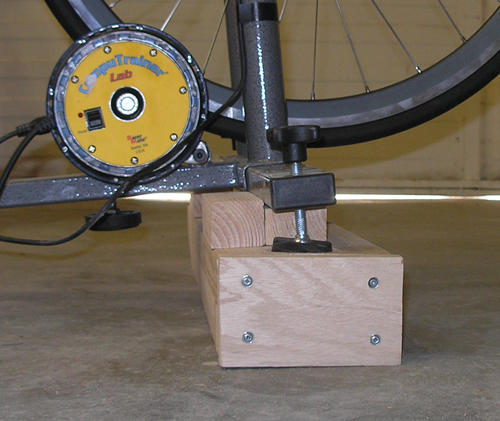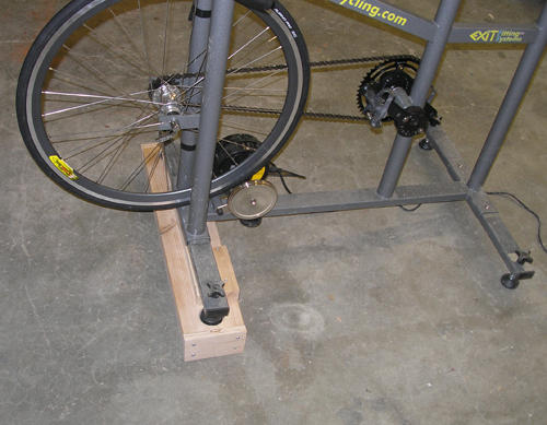 My incliner is overkill. Really, if you just construct a frame built of 2"x4" under a rectangular sheet of 3/4" plywood, you're good. Maybe a strip around the perimeter, to make sure the fit bike's don't scott off the incliner. Slide it under the front feet of a fit bike and your subject is riding uphill.