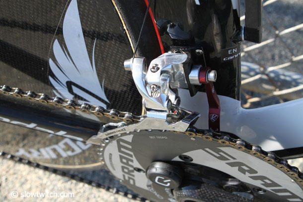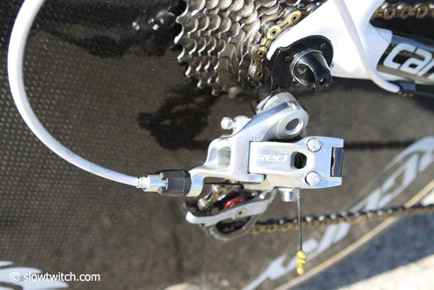 The SRAM Red rear derailleur was most likely in that position most of the TT.