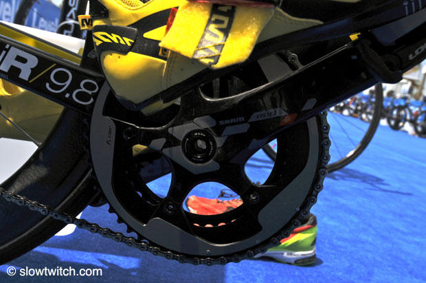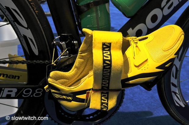 The Mavic TriHelium shoes are nicely fastened for a quick transition.