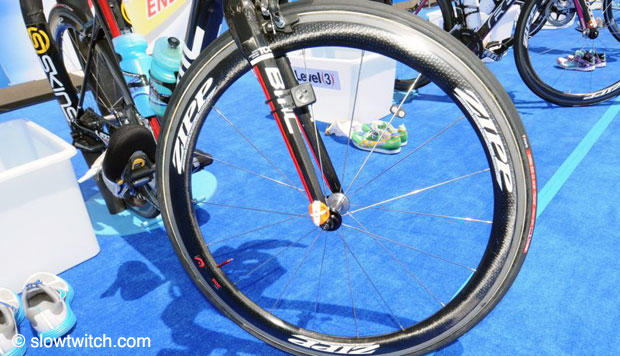 Zipp Firecrest 303 tubular wheels on the BMC of Laura Bennett.