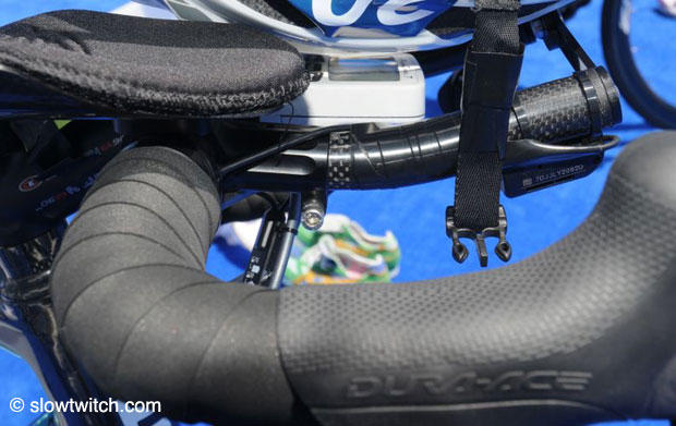 Bennett's SRM display is tucked between the unbranded carbon extensions.