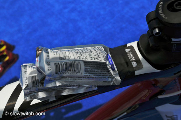 Macca must be a creature of old habits, because these new Specialized Trivent shoes have a nice attachment point for the rubber band on the inside of the shoe.