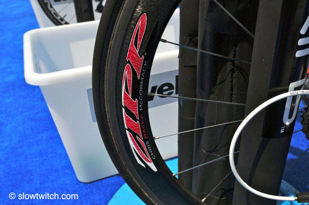 Zipp 404 Firecrest wheels with custom Macca graphics.