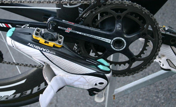Bontrager's tri-specific RXL Hilo WSD shoes with Speedplay Zero pedals and the Campagnolo record cranks.