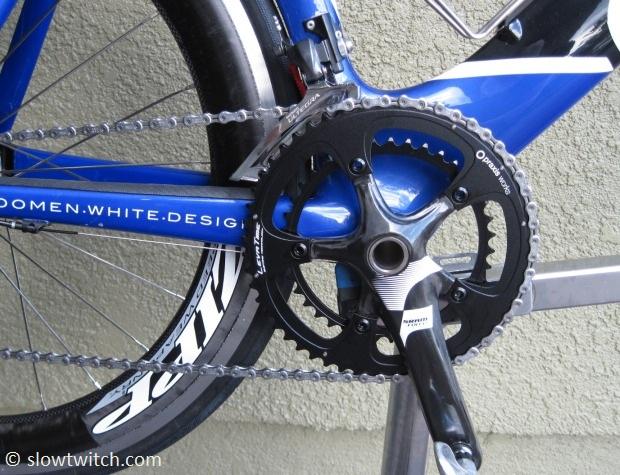I had two test cases to work with. First was a Cervelo P2C with a SRAM Force 53/39 crankset, Rival front derailleur, and 1091 chain. Second was a Trek Speed Concept with SRAM Force 52/36 “mid compact” crankset, Force front derailleur, and 1091 chain. I intended to swap out the rings for equivalent-size Praxis rings.