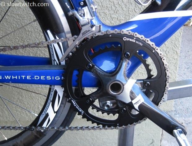 This time around, I opted to swap straight to the Praxis 52/36 rings and Shimano front derailleur; but threw in a wild-card Wippermann Connex 10SX chain. Way back when in my bike shop days, Wippermann chains always had a reputation for quality. Specifically, they were known for lasting a long time, and never breaking. However, they seemed to lack lateral flexibility, and didn’t operate as quietly or shift quite as smooth as competition from Shimano and KMC. In any case, I wanted to give it a fair shake with these high-end rings.