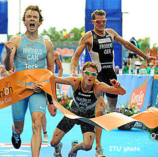 Hauss hit the big time in 2011 with  a 3rd at the Mooloolaba World Cup, took 5th at Sydney, 3rd at Hamburg and 7th at the Olympic-caliber elite field at London.  He also scored 7th at the 2011 Grand Final in Beijing.  Racing like a Hauss afire in 2012, he was 3rd  at Mooloolaba, 4th at Sydney and won the Ishigaki World Cup before cooling off a little with a DNF at Madrid and an 11th place at Kitzbuhel.