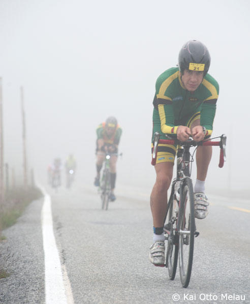 2005 champion and course record holder Bjorn Anderssen continued to lead on the bike but pulled out during the bike segment.