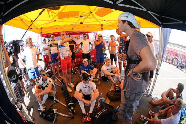 Co-race director Lars Finanger conducts a pre-race pro briefing.