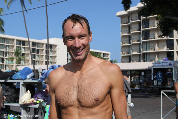Cam Brown is about to ride back to his home in Kona after a morning swim.