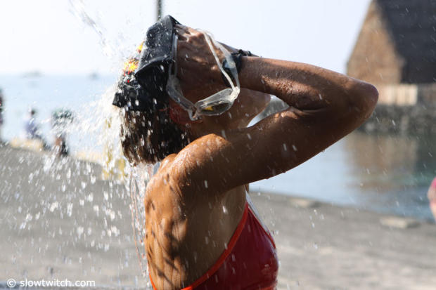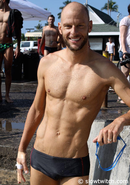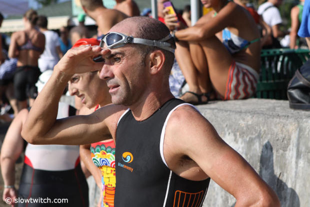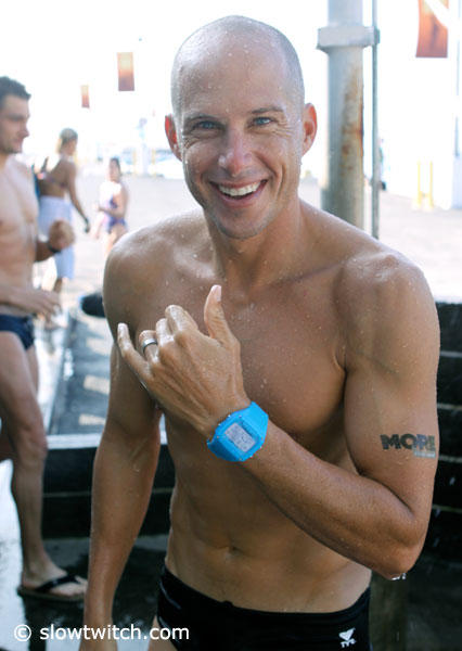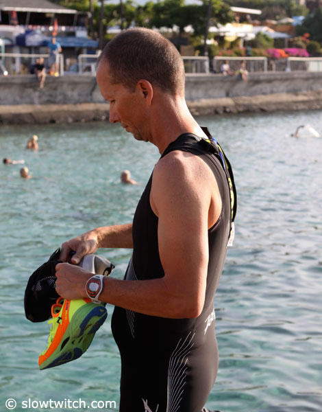 Dave Jewel from Zoot readies himself here for a morning swim.