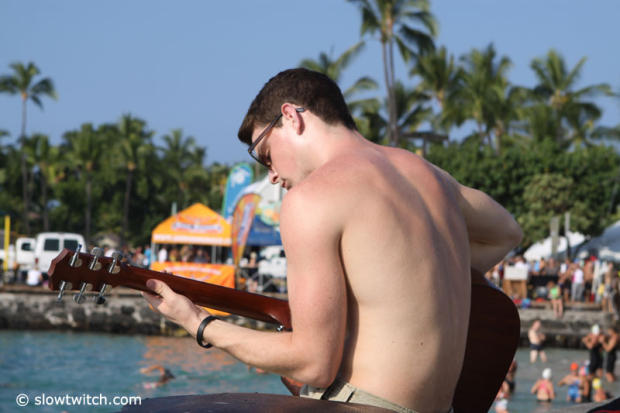 The perfect peanut gallery in Kona is right next to the pier.
