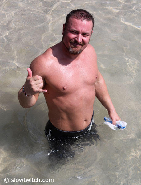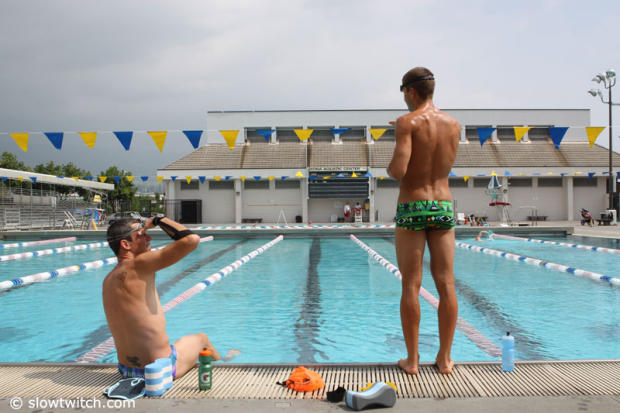 Marko Albert with Guy Crawford after a morning swim.