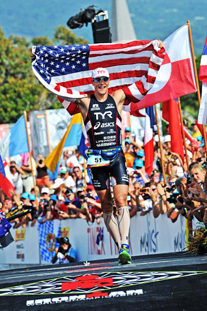 Timothy O'Donnell waves the flag for his first top 10 Kona finish.