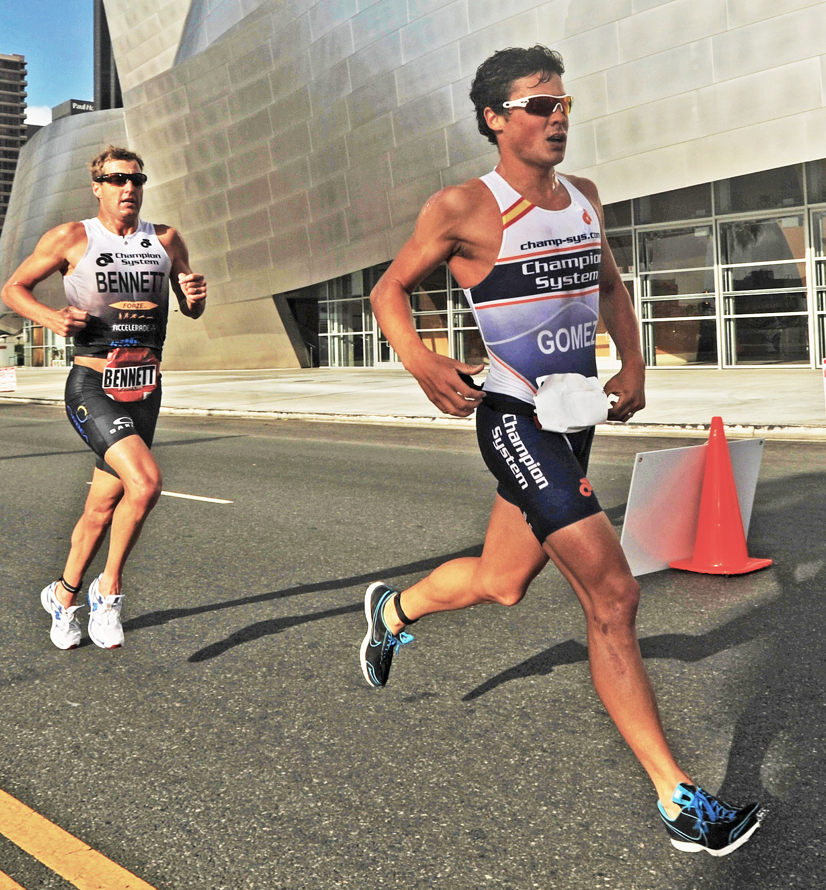 Gomez has won the 2008 and 2010 ITU Olympic distance World Championships, placed 2nd at the 2007, 2009 and 2012 ITU World Championships, won the 2012 ITU Grand Final and placed 2nd at the 2009 and 2010 ITU Grand Finals. He has won 12 ITU World Cups and 4 World Championship Series/Triathlon events. He placed 4th at the 2008 Olympics despite fighting an injured ankle and won silver at the 2012 Olympic triathlon in London. In addition, he won three U.S. Open Toyota Cup victories, an Under 23 World Championship, three European Championships and 5 consecutive podiums at the ITU World Championships.