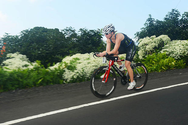 Alexandre Ribeiro of Brazil rode undaunted and ahead alone through several tropical rain squalls on Day 1 and was never headed on his way to a record 6th Ultraman World Championship. Not bad for an ageless 47-year-old father of three.