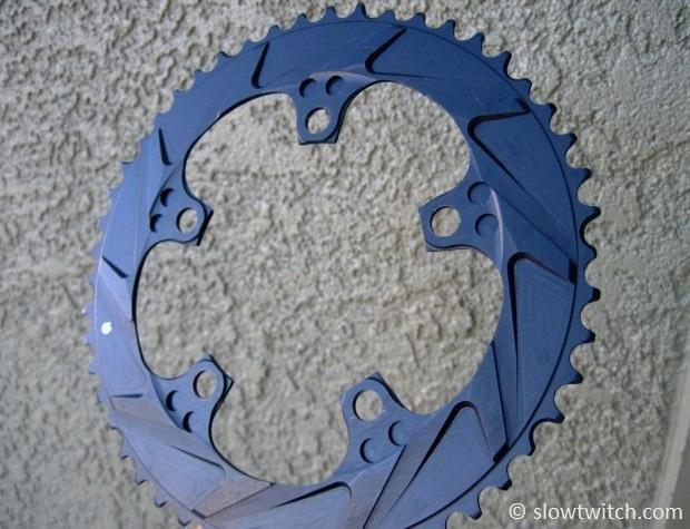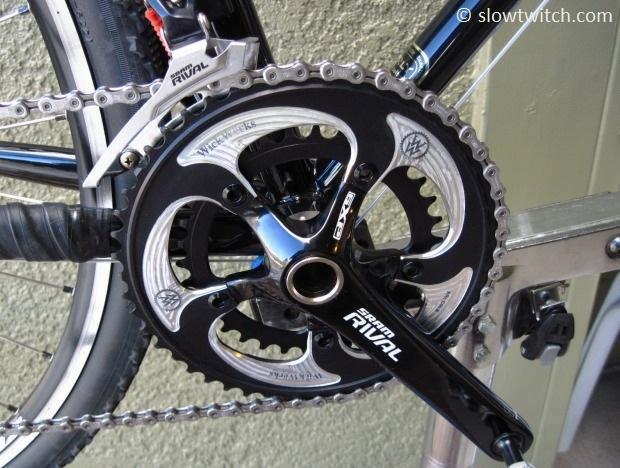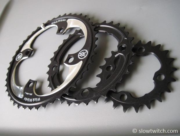 What about sizes? For road-specific applications, WickWerks currently offers 53/39 and 50/34. They also make a large variety of sizes for cyclocross and mountain bikes. Unfortunately, there are no big pie-plate sizes (54, 55, 56+) for you gear mashers and 650c riders.
