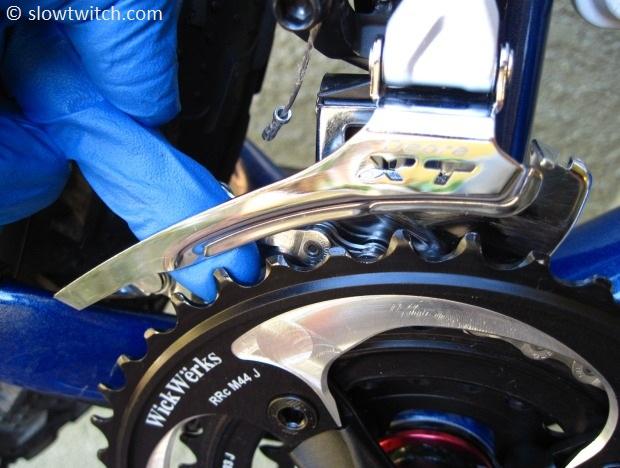 How did it shift? Definitely better than stock. Upshifts and downshifts were faster and cleaner. I still was getting an occasional overshift to the big ring (where the chain climbs up on the teeth momentarily before settling down in to place), but no dropped chains. I rode it in this condition for several rides, including one particularly snowy and gritty ride. In short, the shifting was the best I’ve ever had in those conditions.