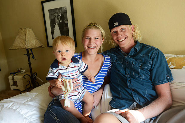 Cameron Dye, the 2012 Toyota Cup Champion, at home in Boulder with wife Natalie and son Liam.