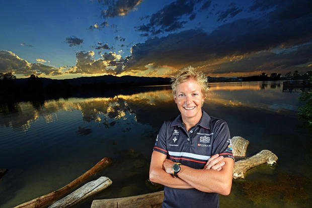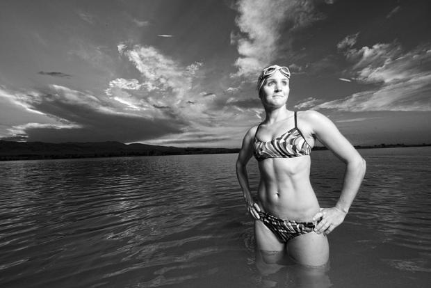 The 14mm wide angle lens captures the big Colorado sky but distorts Julia Grant’s svelte triathlete’s build into a wrestler’s blocky frame.