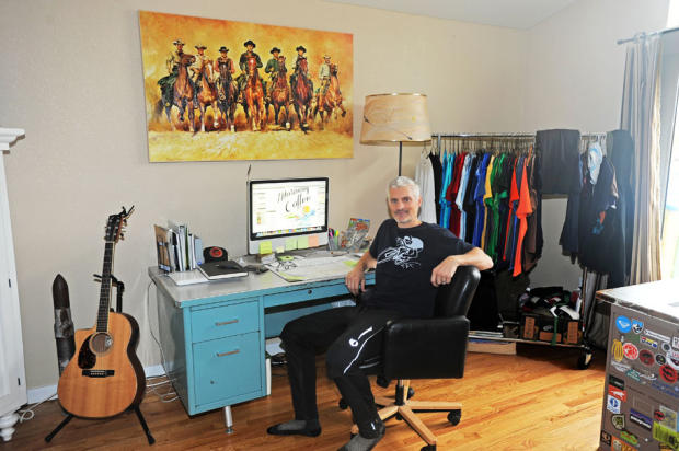 Before Summer and Poet get home from school, Tony works on some designs on his computer.