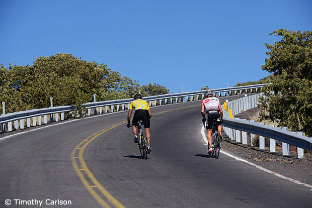 Well, we have to believe that it is possible to make it possible. It would require Ironman finisher type fitness given that the day would likely last around 10 hours and probably well higher than 3.75W per kilo of power on the bike, gearing of 34×32 (or triple), a support crew and a day worth of nutrition for the athlete and crew. View it as a triathlon expedition that takes you from a base camp at Kailua Pier 16,000 feet above the ocean floor to the mountain summit at 30,000 feet above the floor of the ocean. No doubt, there are many who do this route in cars and tour buses. A few strong athletes have biked the entire distance. But has anyone used a triathlon to get to the summit? We don’t know, but we don’t think there has been anyone yet and given that Kona is the spiritual birthplace of triathlon it would only be fitting if someone got to the summit of the Volcano that towers above the island. So who will be the first? Fortunately in doing the job of ill fated Mallory in paving the way for Hillary and Tenzing on Everest, we came back just fine and more than a few have already expressed interest in making this triathlon expedition to the peak of Mauna Kea happen at some point in the future.
