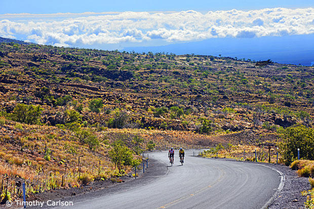 Our crew had some limitations in terms of time. Tim Carlson needed to be back at Kailua Pier on the same day to take photos of the pro bike check in, so our team would have a bit of a cheater format in that we started the endeavor with a car ride to 6000 feet above sea level, driving out of Kailua pier at 6:30 straight up Palani to Hawaii belt road, then a right turn onto saddle road and then a left turn onto the Mauna Kea access road. In fact, the directions from Kailua Pier to the summit of Mauna Kea are simple as drive 40 miles, right turn onto saddle road, drive 16 miles, turn left on Mauna Kea Access road, drive 13 miles to summit.