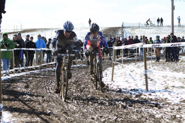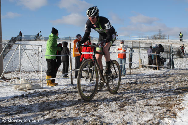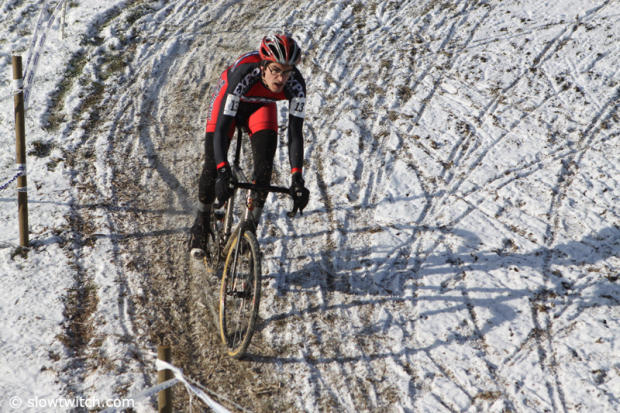 Snow and freezing temperatures overnight changed the landscape and the racing and training action in Louisville today, but that is what makes cyclocross so exciting.