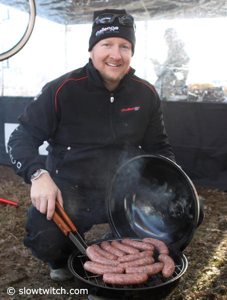 Chris Clinton of Challenge Tires working hard on some bratwursts.