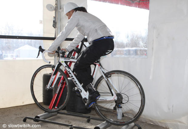 Katerina Nash warming up inside the Team Luna Chix tent.