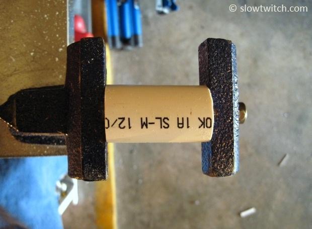 Next, I clamped the pipe in my bench vice. Don’t clamp it too hard, or you’ll risk cracking the pipe.