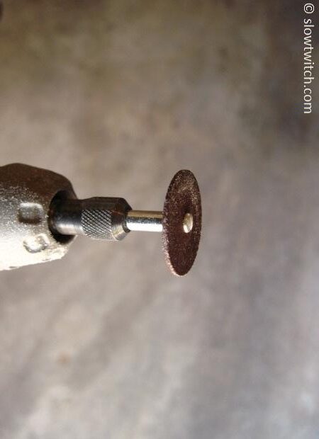 To cut the pipe, I used a Dremel tool with a cutoff wheel. You could do this job with a saw, file, and sandpaper, but it would take a LOT longer. I bought the cheapest Dremel in the store, and it came with about a dozen different bits.