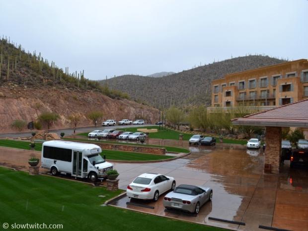 We started the week at the Marriott Starr Pass Resort with the SRAM staff. Unfortunately for everyone, the weather was unseasonably cold. Monday’s planned group ride was cancelled when afternoon rain storms and light snow rolled in to town. What does a creative pro triathlete do? We already ran and swam early that morning, so we walked back to the pool and swam… again. At an outdoor pool. In the snow. This was already turning out to be an interesting week.
