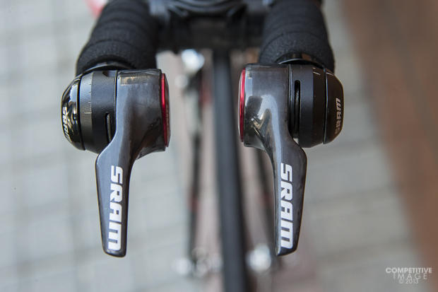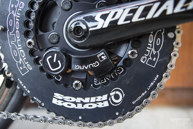 Stoltz runs a Quarq power meter on a Specialized crank with Rotor rings.