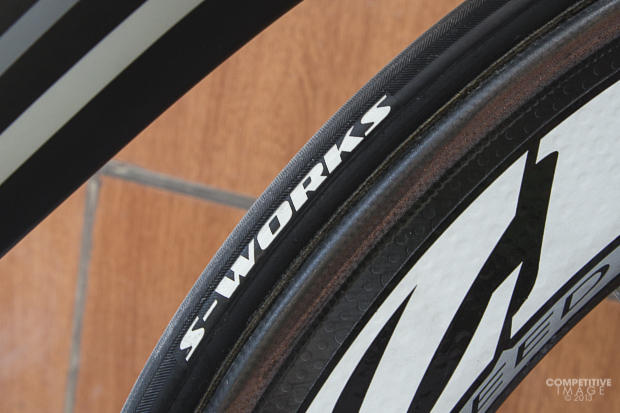 Specialized S-Works Turbo tires on a Zipp 808 up front and a Zipp disc in the rear.