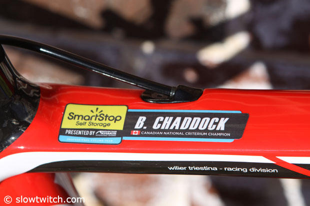 Ben Chaddock of Team SmartStop powered by Mountain Khakis is the Canadian Criterium champion and we took a closer look at his Wilier Cento 1SR race bike. When Chaddock is not racing, training or eating he spends passionate time with Bicycle Inspired Kinetics in Elementary Schools.
