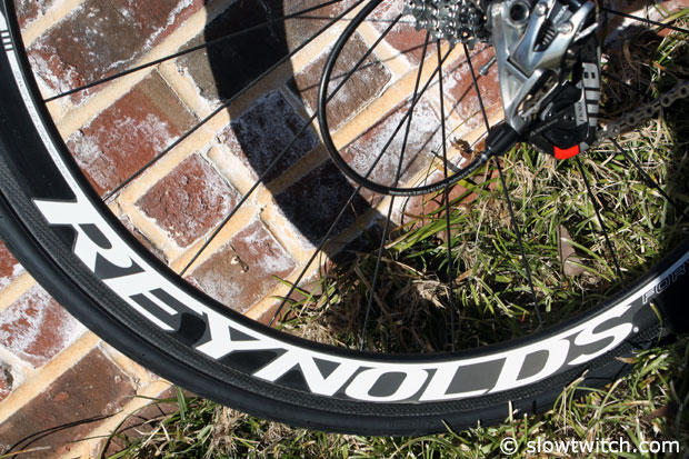 Reynolds Forty Six carbon clincher wheels with Maxxis Cormet One70 tires front and back.