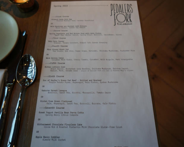The complex sits right smack in old Calabasas, the downtown district in an old equestrian motif, like a movie set left over from a Randolph Scott or Roy Rogers western filmed in the 1940s. Pedaler’s Fork was built from the ground up, of reclaimed wood and that fits with the theme of the restaurant and its owners. Produce comes from farms visited by the chef and the owners, and any farm that doesn’t allow a visit doesn’t sell to Pedaler’s Fork. Any meat on the menu comes from grass-feed beef only.