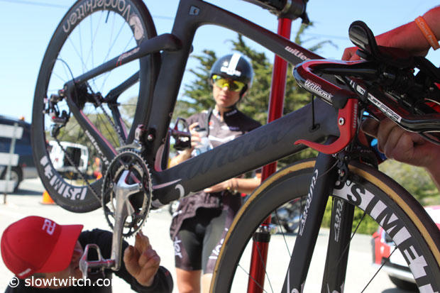 With only 20 minutes to spare the SRAM mechanics performed an internal cable routing operation on this Wilier Blade.