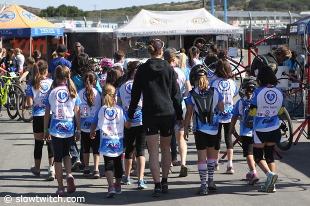 Quite a few young cyclists were around today including this group of Little Bellas.
