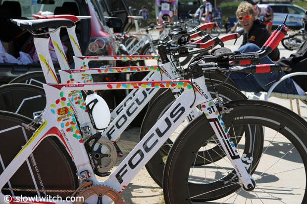 A few miles away from the expo a fleet of Focus TT bikes of Team Jelly Belly is ready for the time trial.