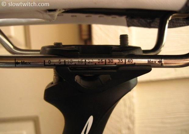 I opted to align the Attack on the same front adjustment marker. After measuring both saddles about ten times, it appeared that these markers were accurate between saddles, relative to the “nose” of the saddle.