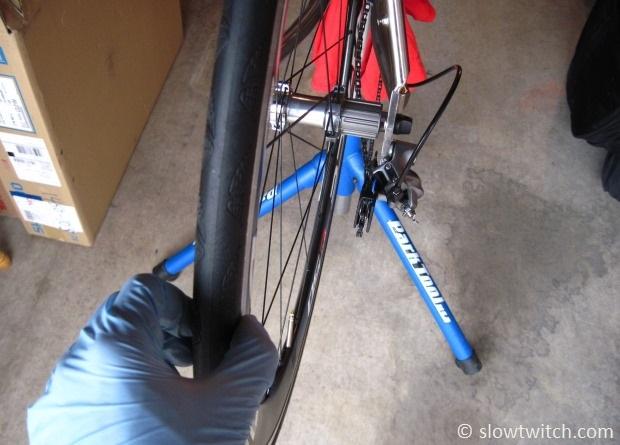 Once the hub is all back together, I do the ‘bike check’. Put the wheel in your bike and tighten the quick release skewer. Next, grab the edge of the rim and try to wiggle it left-to-right.