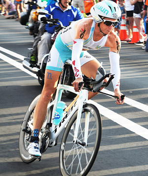 ST: Your bike split at Kona in 2011 was virtually even with Karin Thuerig [4:44:15 to Thuerig’s 4:44:19] and she was a World Championship Time Trial Gold Medalist and an Olympic medalist.