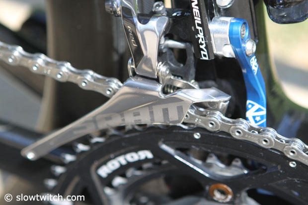 A SRAM Red front derailleur and K-Edge chain guide.