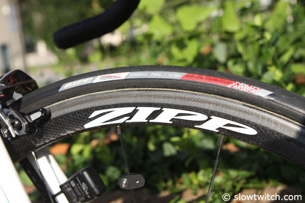 Zipp 303 FC wheels front and back with Zipp Tangente tires.