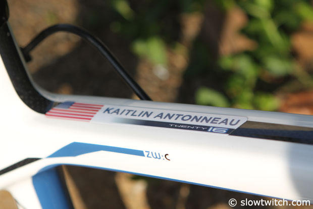 21-year old Racine, Wisconsin native Kaitlin Antonneau races on the road for the Exergy / TWENTY16 squad and we took a closer look at the SRAM and Zipp equipped 45cm Felt ZW C race bike of this 5'1" elite cyclist.