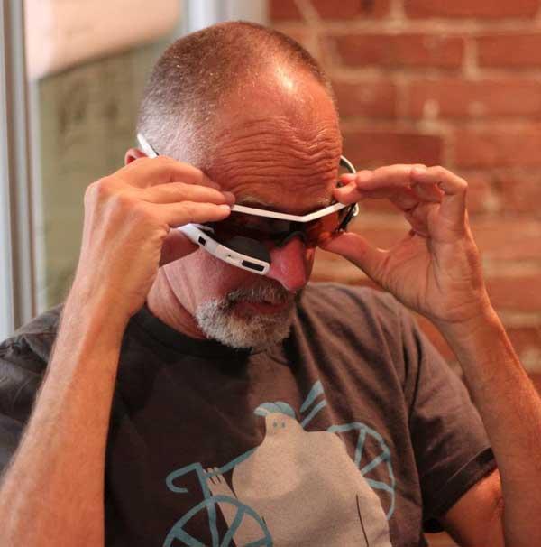 I flew up to Vancouver, BC, to the headquarters of Recon Instruments. These folks are pursuing a particular motif in wearable computing, the heads-up display, or HUD, and the product is the Recon Jet. The idea is to present information to the user without the need to avert the eyes from the task at hand. This is a technique currently used in aircraft, where diagnostics and metrics are overlaid onto the pilot’s field of vision. Imagine this technique used by a cyclist or triathlete, especially – but not exclusively – while aboard his bicycle.