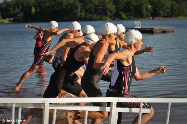 Jennifer Spieldenner is chasing Lauren Brandon who led out of the water.